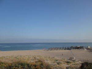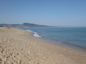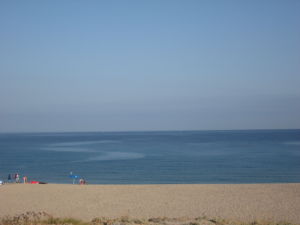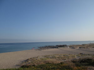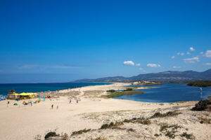 Sulla spiaggia di Valledoria e sulla foce del fiume Coghinas incombe, simpaticamente ammiccante dall’estremo lembo orientale del Golfo dell’Asinara, la Rocca di Castelsardo con il suo doriano Castelgenovese che, a sua volta, si erge dominante nei confronti degli edifici cittadini, faticosamente abbarbicati sui brevi ma erti pendii della rocca stessa. L’accostamento dei due paesaggi sembra voler ricordare e perpetuare la simbiotica integrazione di due lembi di territorio che non possono che essere complementari, nell’austerità della tradizione storica e della granitica imponenza architettonica l’uno e nella vivacità delle nuove prospettive l’altro.